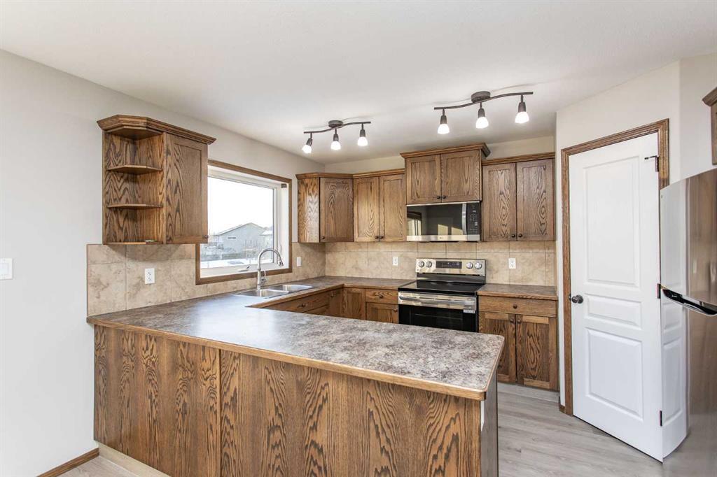 This well-maintained, move-in-ready home features timeless wood cabinetry and a functional kitchen with a corner pantry, new appliances, and new vinyl plank flooring & ca... MLS®: A2298162 - Iron Wolf Attached-Side by Side,Modified Bi-Level $337,900